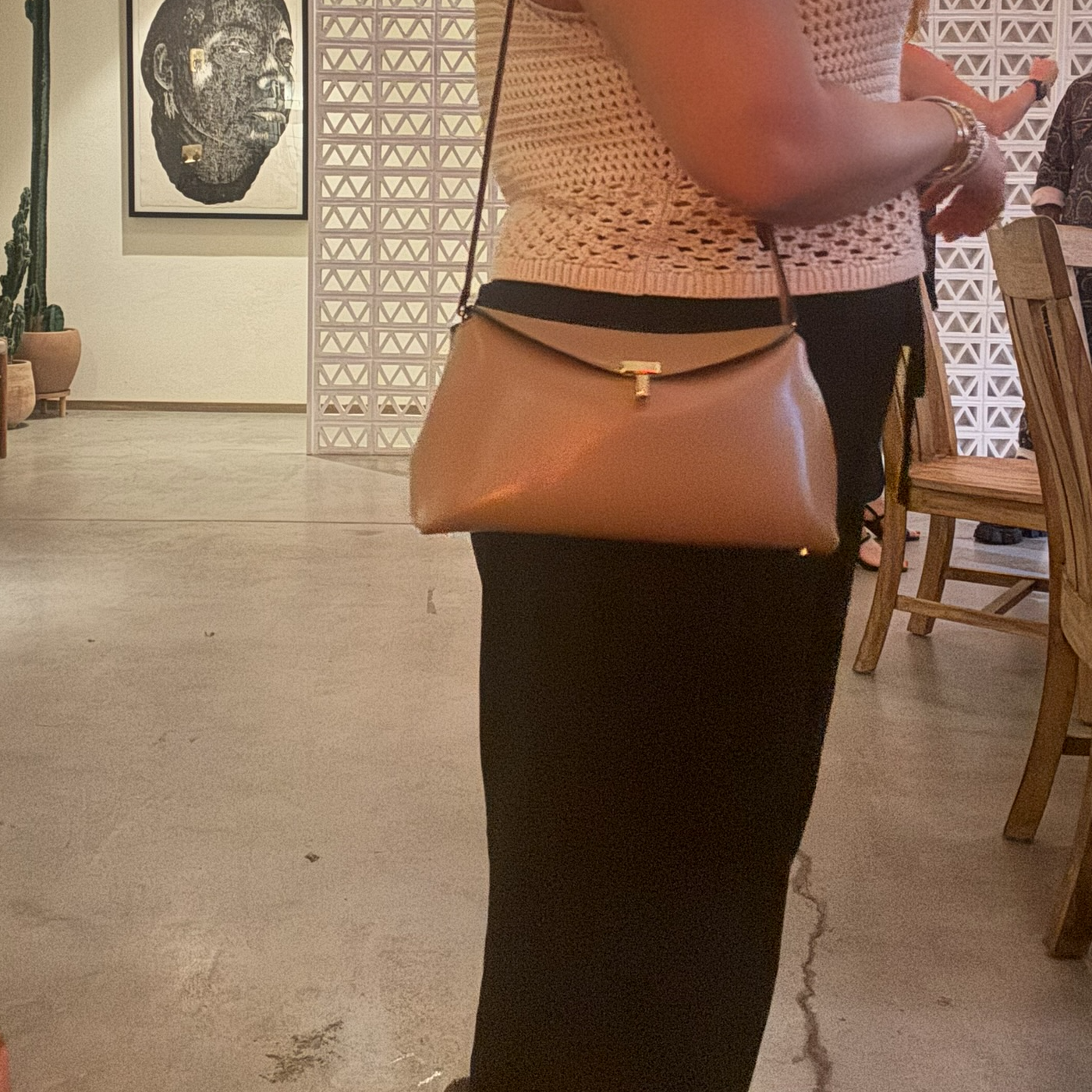 The leather is sturdy. The structure holds. The hardware hasn’t chipped. The beige hasn’t discolored. It fits everything you need for dinner without losing its sculptural shape.