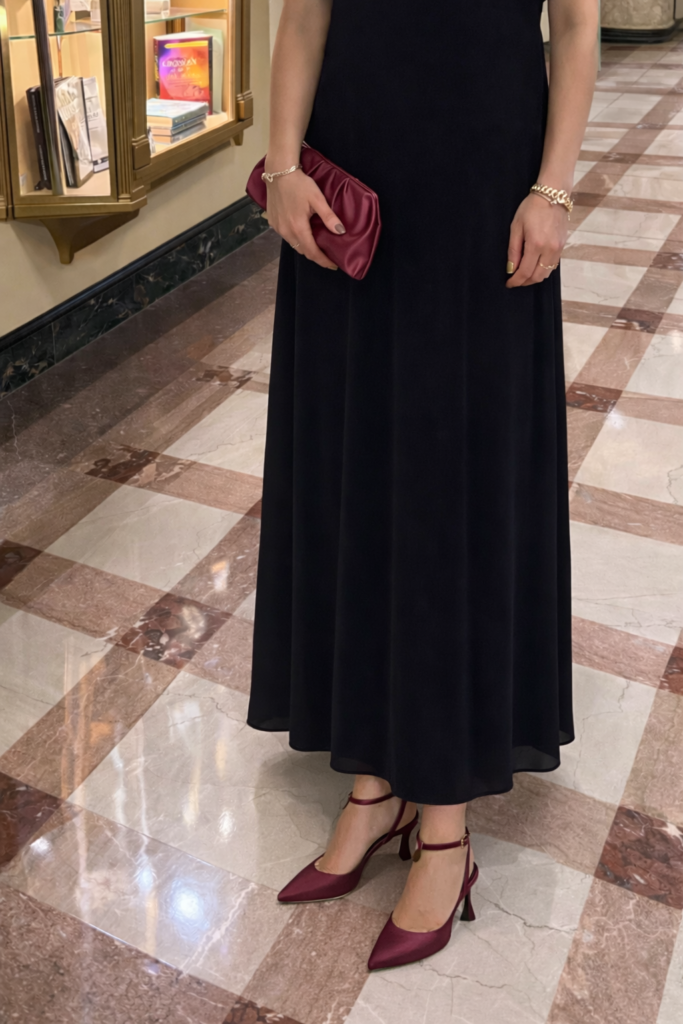 Nude heels – Elongating and effortless. A reliable option if you want the dress to remain the focus.