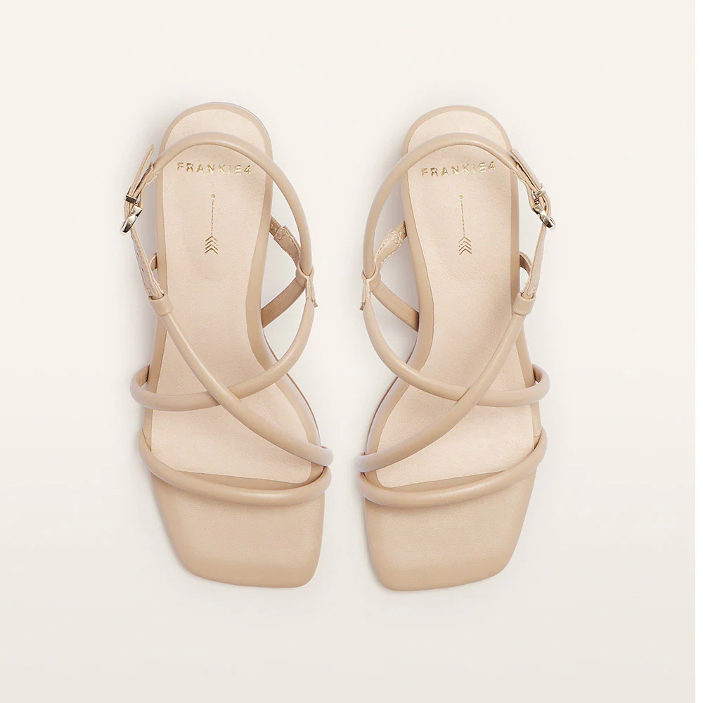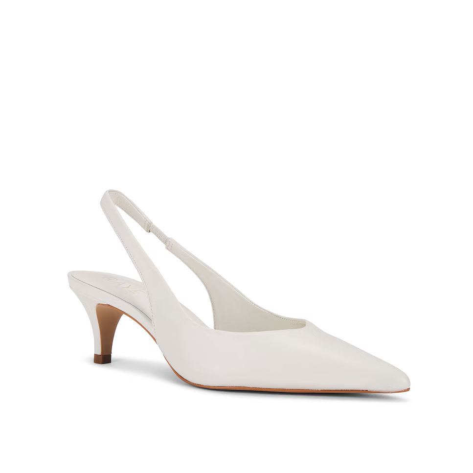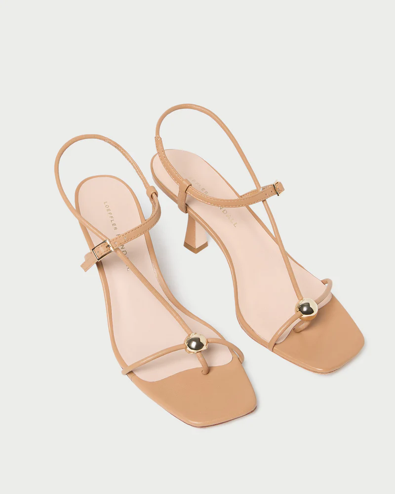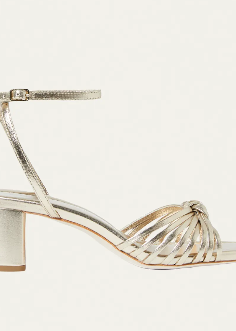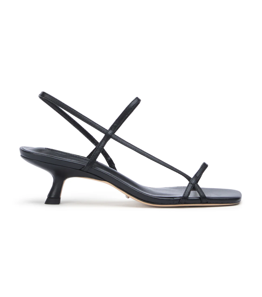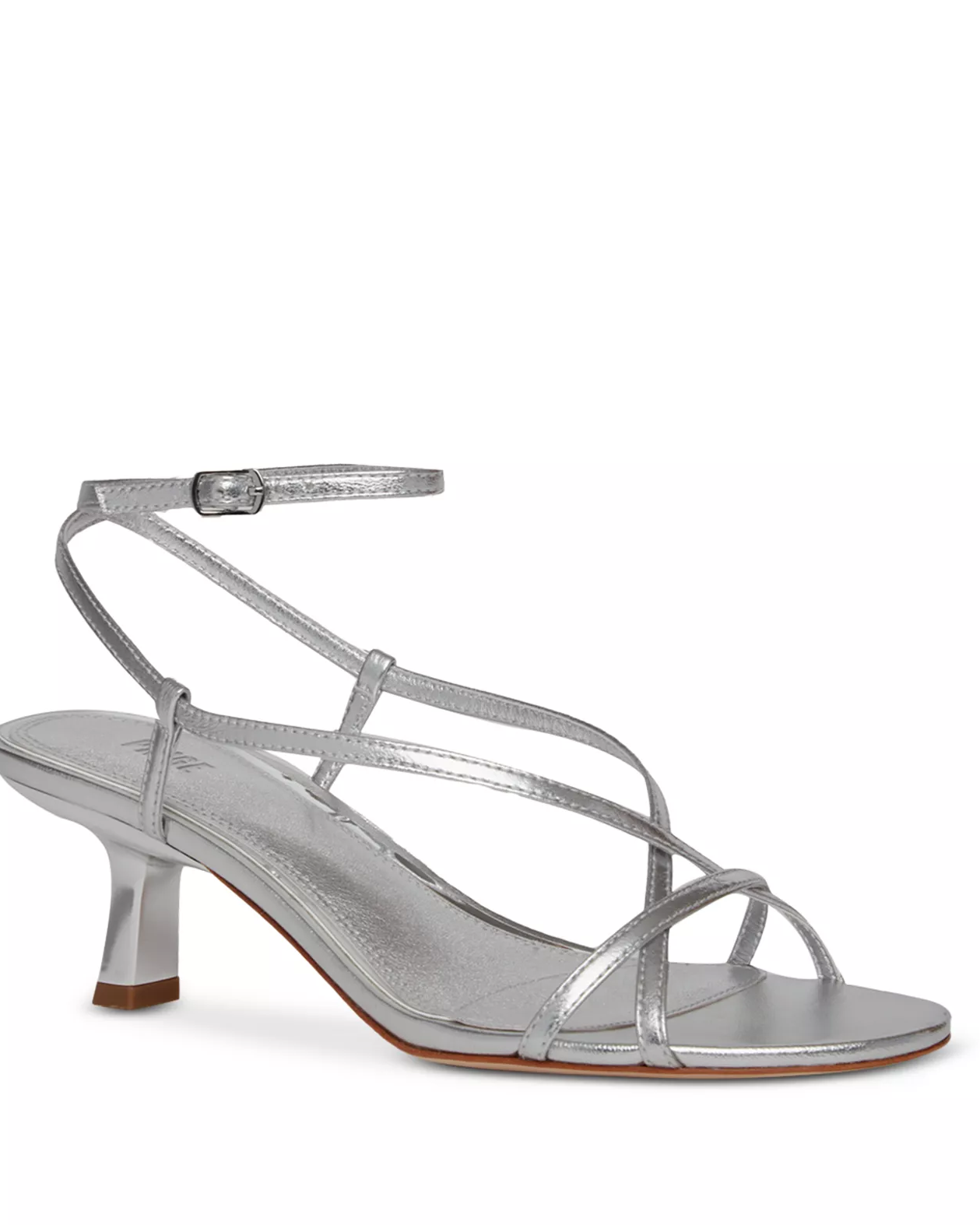 A simple strappy heel with very minimal embellishments. Avoid: Gaudy cutouts or an ultra-trendy upper.